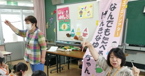 氷上幼稚園では「何でも食べる元気なゆうちゃん」をしました。